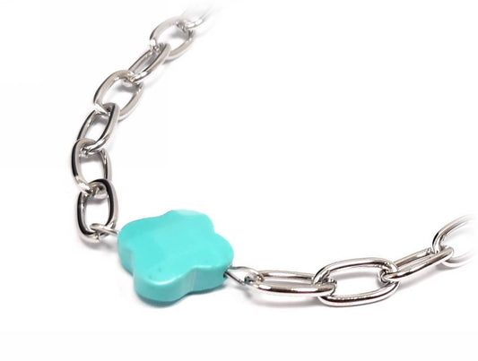 Γυναικείο Ασημένιο Κολιέ με Μεγάλους Κρίκους και Μπλε Τετράφυλλο Στοιχείο | 2212-459A
