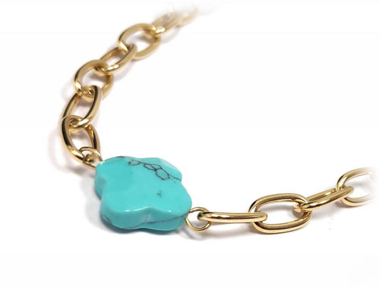 Γυναικείο Κολιέ με Χρυσούς Κρίκους και Μπλε Τετράφυλλη Πέτρα | 2212-459X