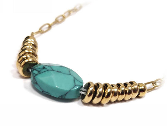 Κολιέ με Χρυσή Αλυσίδα και Μπλε-Πράσινη Μαρμάρινη Χάντρα | 2212-460X