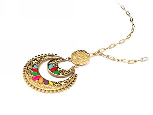 Εντυπωσιακό Γυναικείο Κολιέ με Χρυσό Μενταγιόν και Πολύχρωμες Λεπτομέρειες | 2212-464X