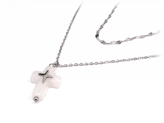 Ασημένιο Κολιέ με Λευκό Σταυρό και Ανάγλυφη Λεπτομέρεια | 2212-472A