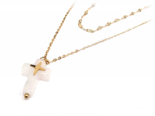 Χρυσή Αλυσίδα Λαιμού με Λευκό Σταυρό και Χρυσή Λεπτομέρεια | 2212-472X
