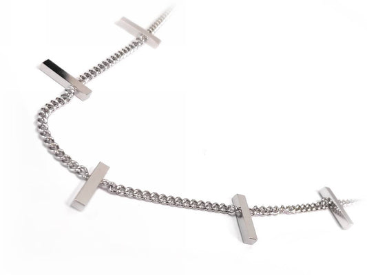 Ασημένιο Κολιέ με Λεπτή Αλυσίδα και Πέντε Ορθογώνια Στοιχεία | 2212-473A