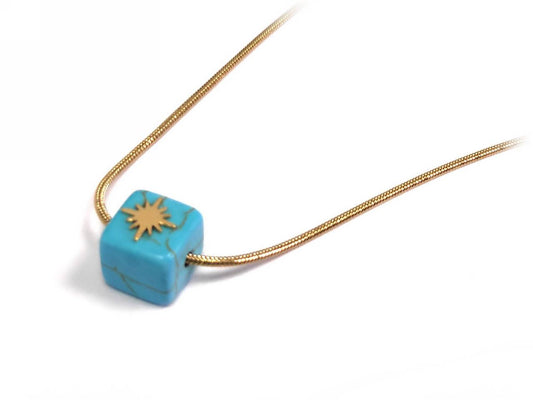 Γυναικείο Κολιέ με Χρυσή Αλυσίδα και Μπλε Τετράγωνο Στοιχείο | 2212-475X