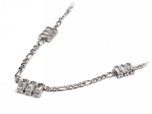 Ασημί Κολιέ με Λεπτή Αλυσίδα και Διαμαντοειδή Στολίδια | 2212-477A