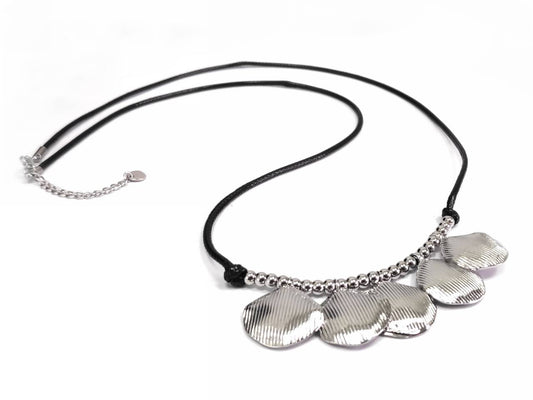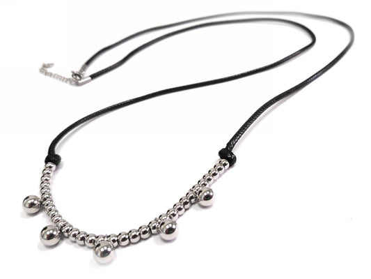 Κολιέ με Μαύρο Κορδόνι και Ασημένιες Χάντρες | 2212-478A