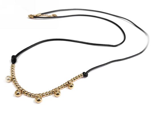 Κολιέ με Μαύρο Κορδόνι και Χρυσές Μεταλλικές Χάντρες | 2212-479X