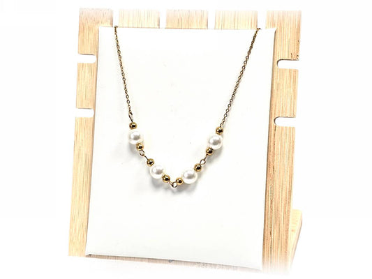 Κολιέ Ατσάλι 316L, αλυσίδα με μαργαριτάρι σε χρώμα Χρυσαφί