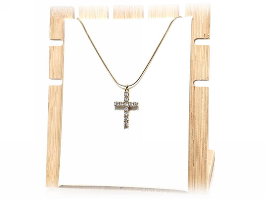 Κολιέ Ατσάλι 316L, αλυσίδα με σταυρό και στρας σε χρώμα Χρυσαφί