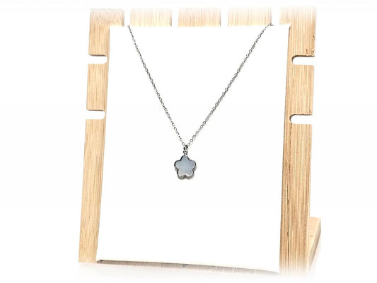 Κολιέ Ατσάλι 316L, αλυσίδα με λουλούδι φίλντισι σε χρώμα Ασημί