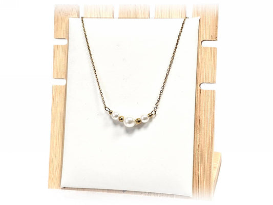 Κολιέ Ατσάλι 316L, αλυσίδα με πέρλα σε χρώμα Χρυσαφί