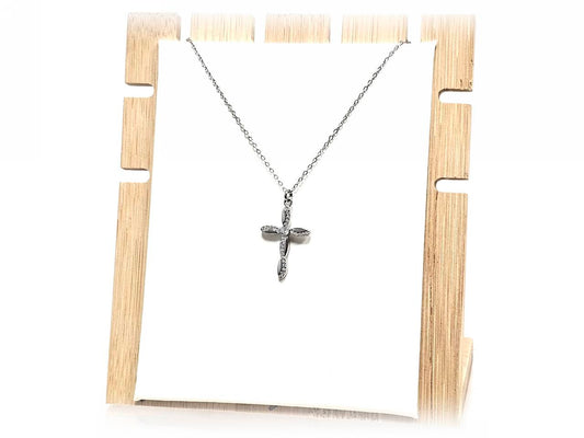 Κολιέ Ατσάλι 316L, αλυσίδα με σταυρό και στρας σε χρώμα Ασημί