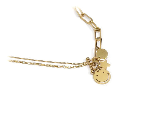 Χρυσό Κολιέ με Διπλή Αλυσίδα και Μενταγιόν Χαμόγελο, Αστέρι & Δίσκο | 2012-184X