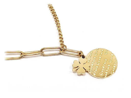 Χρυσό Κολιέ με Μενταγιόν "Good Luck" και Τετράφυλλο Τριφύλλι | 2012-211X