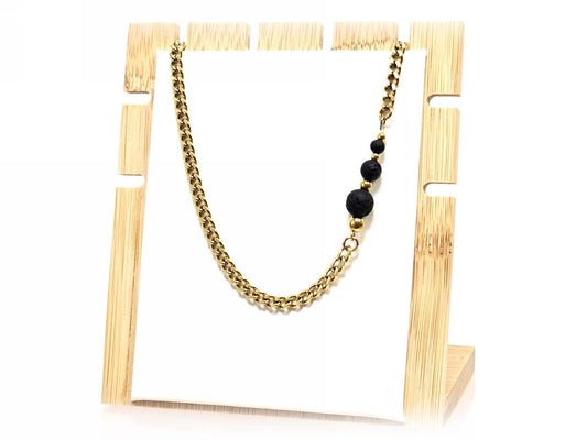 Κολιέ Πέτρα 316L, αλυσίδα με λάβα σε χρώμα Χρυσαφί