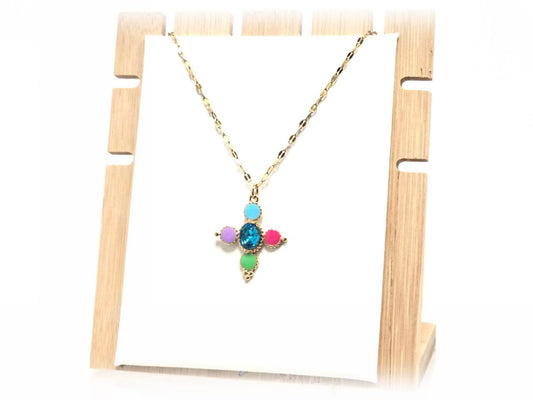 Κολιέ Ατσάλι 316L, αλυσίδα με σταυρό και στρας σε χρώμα Χρυσαφί