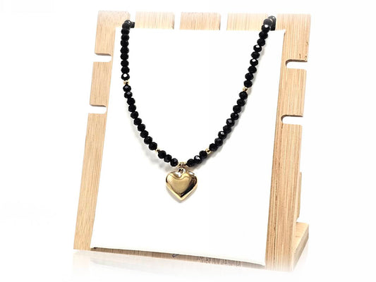 Κολιέ Ατσάλι 316L, καρδιά με κρυσταλλάκι σε χρώμα Χρυσαφί