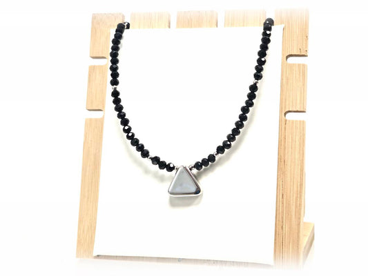 Κολιέ Ατσάλι 316L, τρίγωνο με κρυσταλλάκι σε χρώμα Ασημί