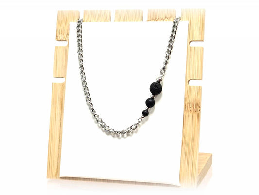 Κολιέ Πέτρα 316L, αλυσίδα με λάβα σε χρώμα Ασημί