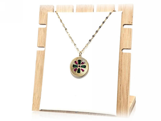 Κολιέ Πέτρα 316L, αλυσίδα με μαλαχίτη σε χρώμα Χρυσαφί