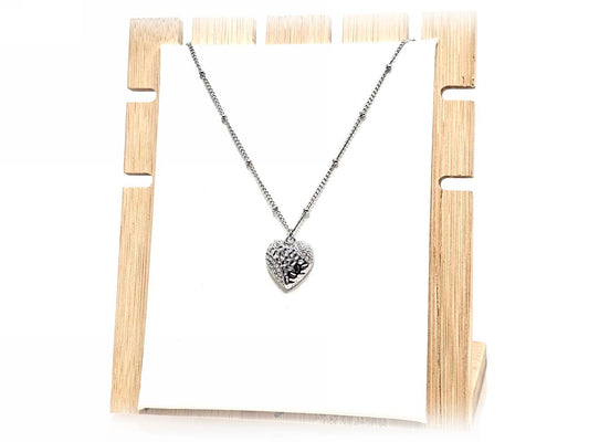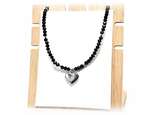 Κολιέ Ατσάλι 316L, καρδιά με κρυσταλλάκι σε χρώμα Ασημί