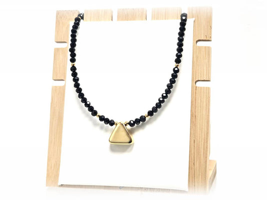 Κολιέ Ατσάλι 316L, τρίγωνο με κρυσταλλάκι σε χρώμα Χρυσαφί