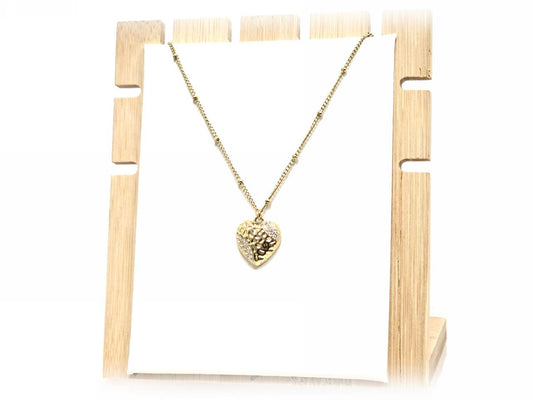 Κολιέ Ατσάλι 316L, αλυδίδα καρδιά με στρας σε χρώμα Χρυσαφί