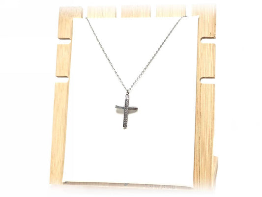 Κολιέ Ατσάλι 316L , αλυσίδα με σταυρό και στρας σε χρώμα Ασημί