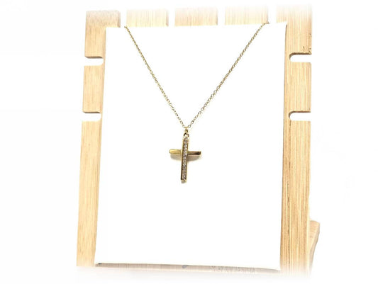 Κολιέ Ατσάλι 316L , αλυσίδα με σταυρό και στρας σε χρώμα Χρυσαφί