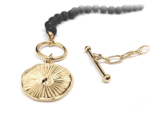 Γυναικείο Κολιέ με Μαύρο Κορδόνι και Χρυσές Διακοσμητικές Χάντρες | 2212-478X