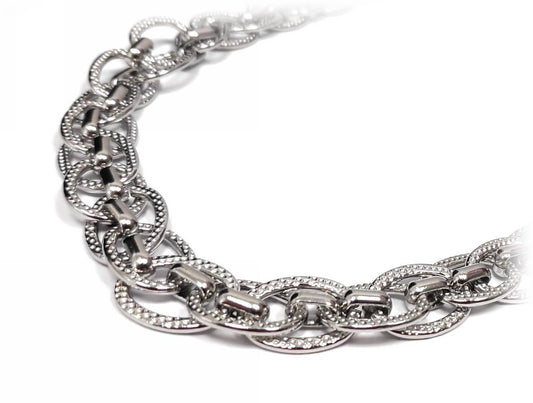 Ασημί Κολιέ με Μεγάλους Ενωμένους Κρίκους και Ανάγλυφη Υφή | 2212-417A