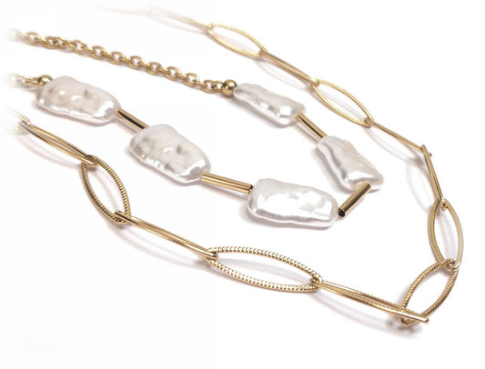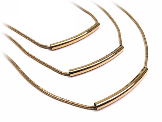 Πολυεπίπεδο Χρυσό Κολιέ με Λεπτές Αλυσίδες και Κυλινδρικά Στοιχεία | 2332-038X