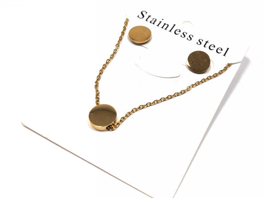 Σετ Κοσμημάτων από Ατσάλι με Χρυσό Κολιέ και Σκουλαρίκια με Κυκλικό Σχέδιο | 2331-201X