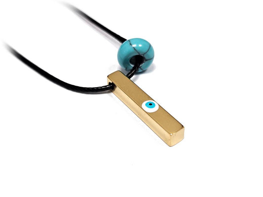 Χρυσό Κολιέ με Μενταγιόν Μάτι σε Μπλε και Λευκό | 2512-122X