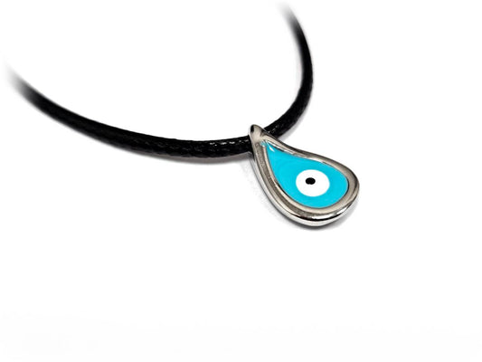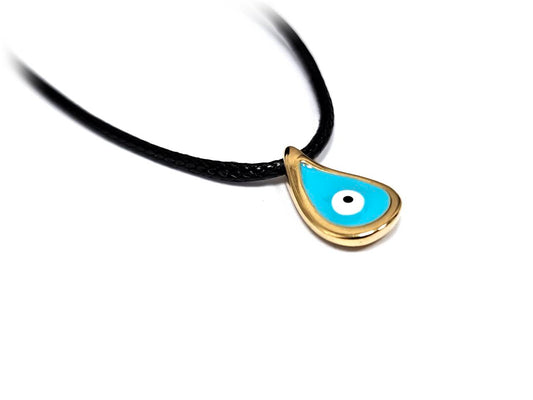 Κολιέ με Μαύρο Κορδόνι και Μενταγιόν Μάτι σε Σχήμα Δάκρυ | 2512-118A