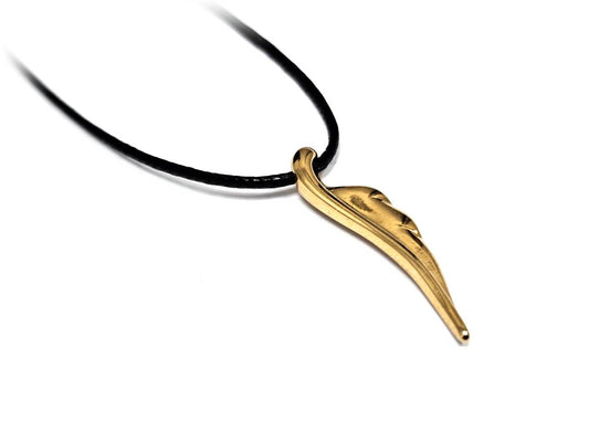 Γυναικείο Κολιέ με Μαύρο Κορδόνι και Χρυσό Μενταγιόν Φτερό | 2512-121X