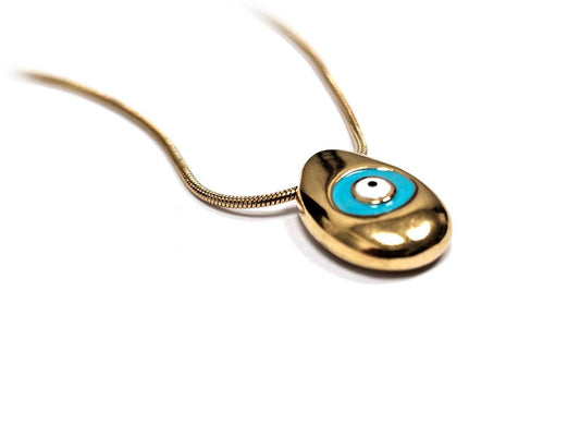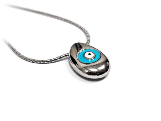 Γυναικείο Κολιέ με Ασημένια Αλυσίδα & Μενταγιόν Μάτι σε Σχήμα Δάκρυ | 2512-122A