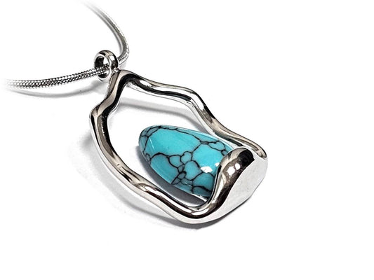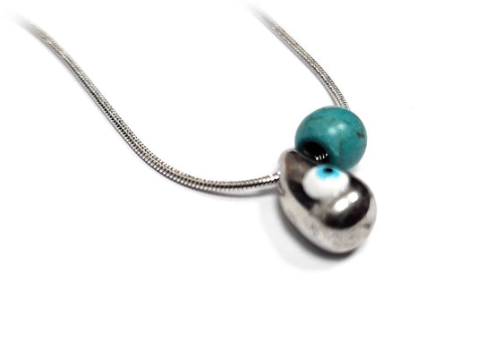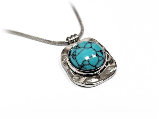 Γυναικείο Κολιέ με Ασημένια Αλυσίδα και Τιρκουάζ Μενταγιόν | 2512-128A