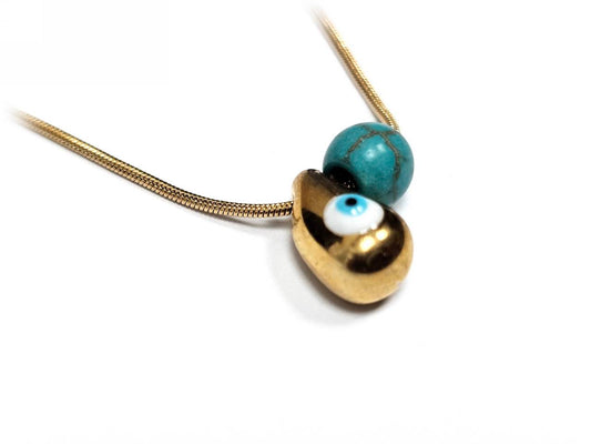 Γυναικείο Κολιέ με Λεπτή Χρυσή Αλυσίδα και Μενταγιόν με Γαλάζια και Χρυσή Σφαίρα με Ματάκι | 2512-123X
