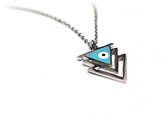 Γυναικείο Κολιέ με Τριγωνικό Μενταγιόν και Μάτι σε Μπλε Αποχρώσεις | 2512-124A