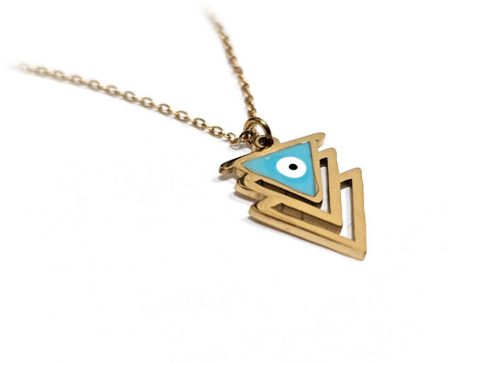 Γυναικείο Κολιέ με Τριγωνικό Μενταγιόν και Γαλάζιο Μάτι | 2512-124X