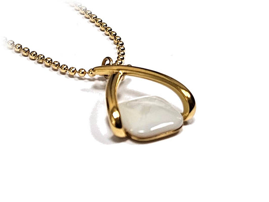 Γυναικείο Χρυσό Κολιέ με Μενταγιόν Δάκρυ και Μαργαριταρένια Πέτρα | 2512-125X