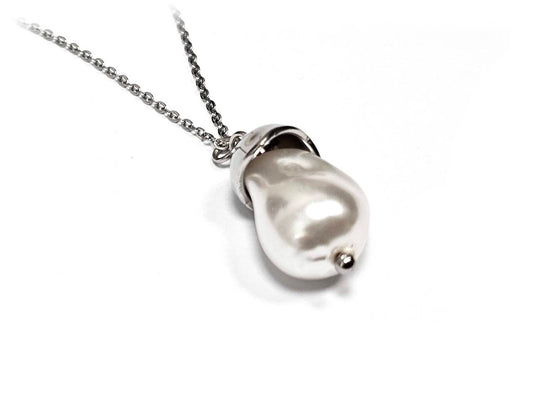 Γυναικείο Ασημένιο Κολιέ με Μενταγιόν Κοχύλι και Λευκό Μαργαριτάρι | 2512-126A