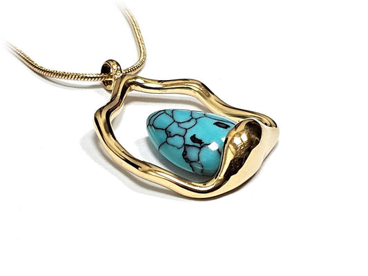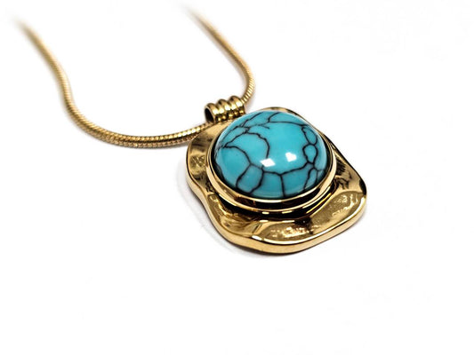 Γυναικείο Χρυσό Κολιέ με Τιρκουάζ Πέτρα και Ακανόνιστο Πλαίσιο | 2512-129X