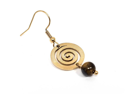 Σκουλαρίκια Πέτρα Ατσάλι 316L, σπείρα με μάτι τίγρης σε χρώμα Χρυσαφί
