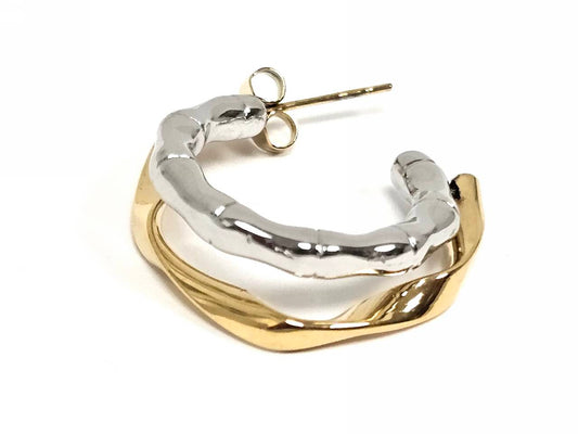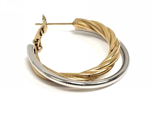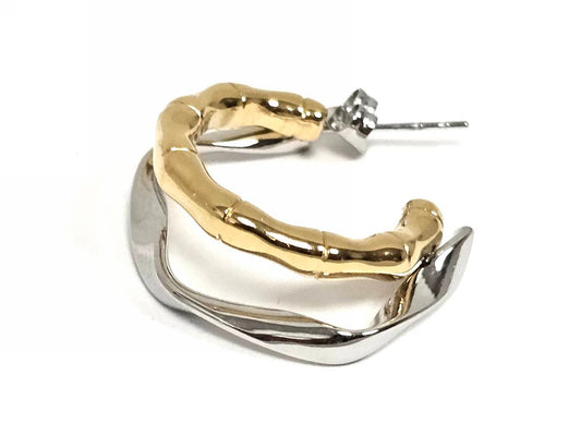 Σκουλαρίκια Ατσάλι 316L, διπλός κρίκος σε χρώμα Ασημί και χρώμα Χρυσαφί