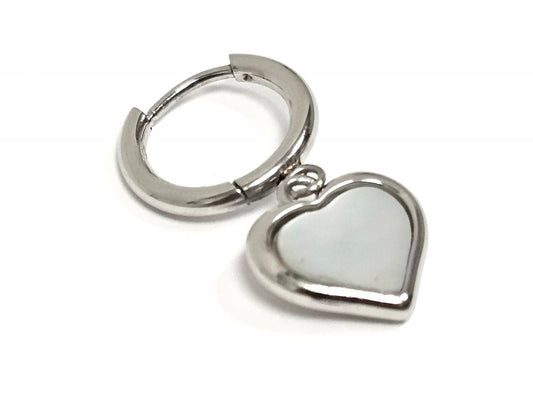 Σκουλαρίκια Ατσάλι 316L, κρίκος με καρδιά και φίλντισι σε χρώμα Ασημί