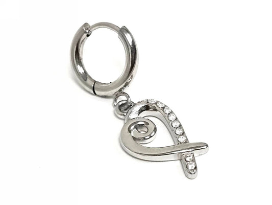 Σκουλαρίκια Ατσάλι 316L, κρίκος με καρδιά και στρας σε χρώμα Ασημί
