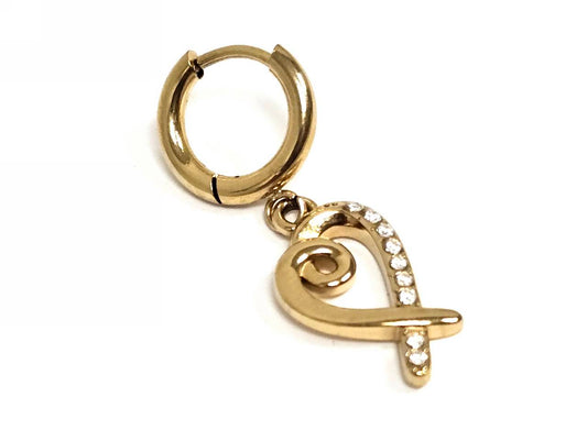 Σκουλαρίκια Ατσάλι 316L, κρίκος με καρδιά και στρας σε χρώμα Χρυσαφί