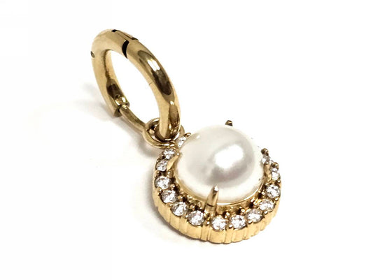 Σκουλαρίκια Ατσάλι 316L, κρίκος με πέρλα και στρας σε χρώμα Χρυσαφί
